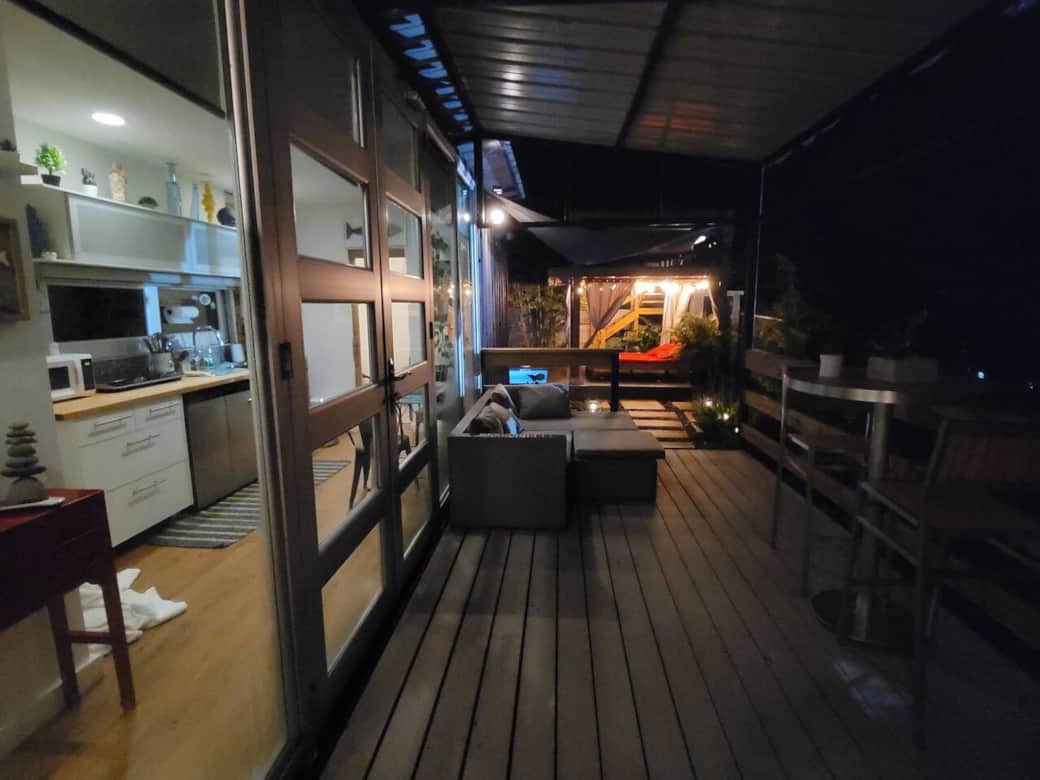 Enjoy a unique experience in this modern short-term rental container home, located near the best beaches in Arecibo. Ideal for those looking for a quiet stay close to the sea, this property offers a spectacular view of the Atlantic Ocean from its terrace. The container is fully equipped with a functional kitchen, private bathroom, and an outdoor half bath for convenience. Relax in the heated pool